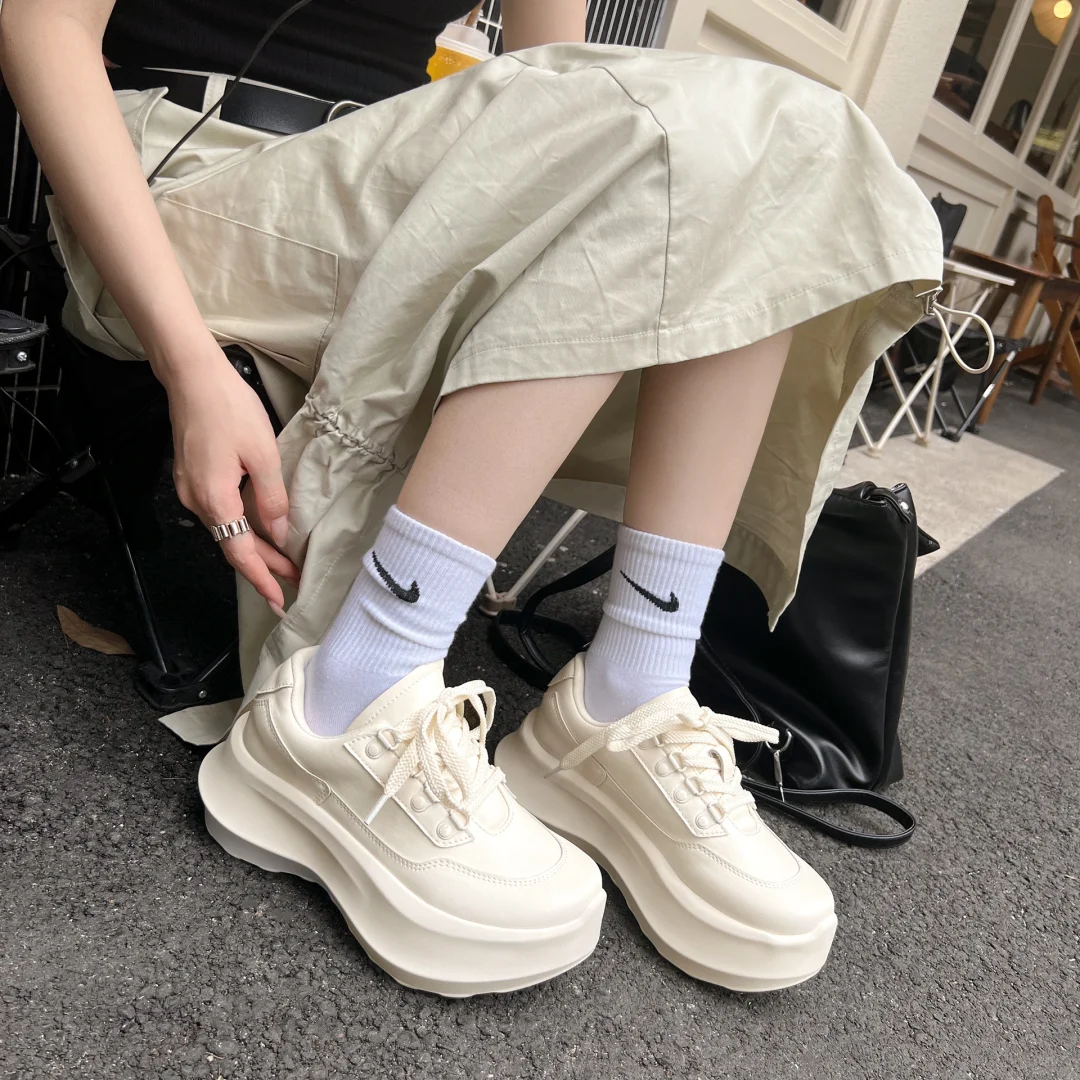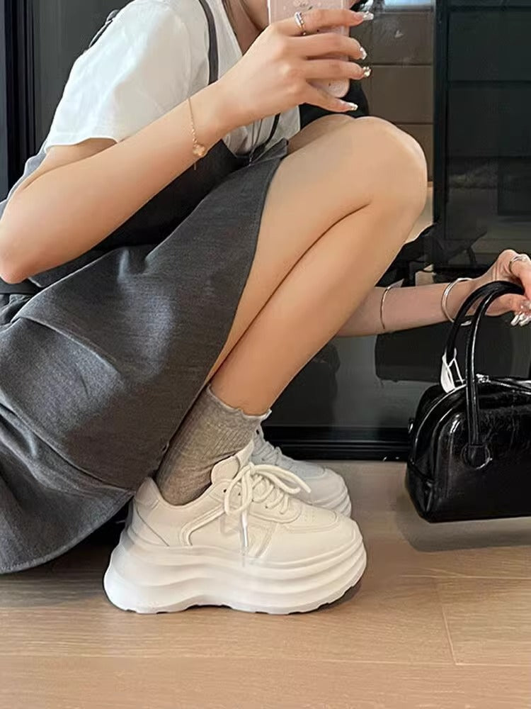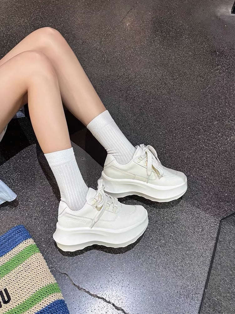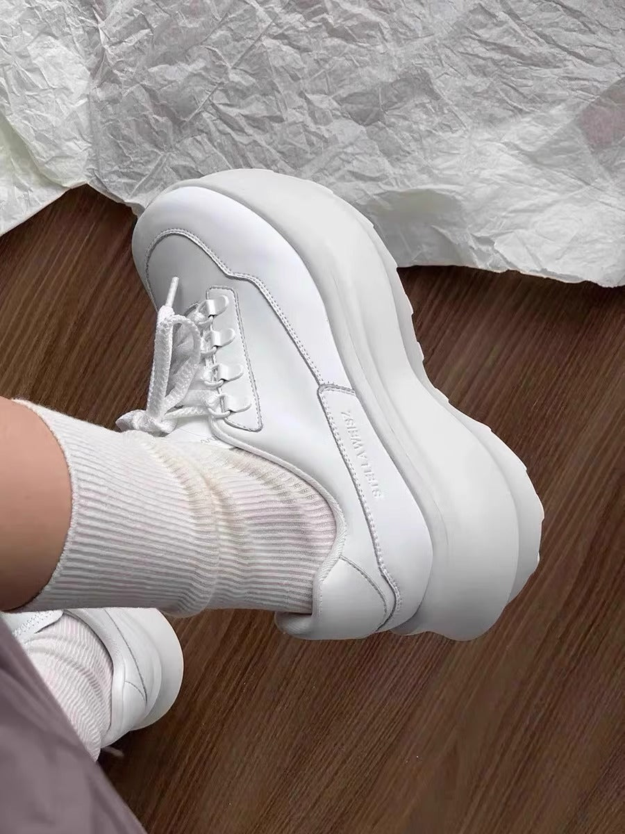Internet Celebrity Platform Shoes European Station 2024 Winter New Arrival Trendy Cool White 7cm Increased Shoelace Sports Casual Shoes