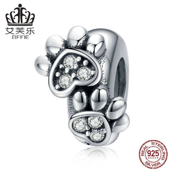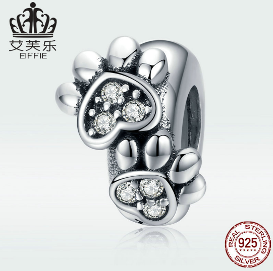 Original Beaded Animal Footprints Separated Beads DIY Bracelet Accessories Sterling Silver S925 Loose Bead Jewelry Accessories