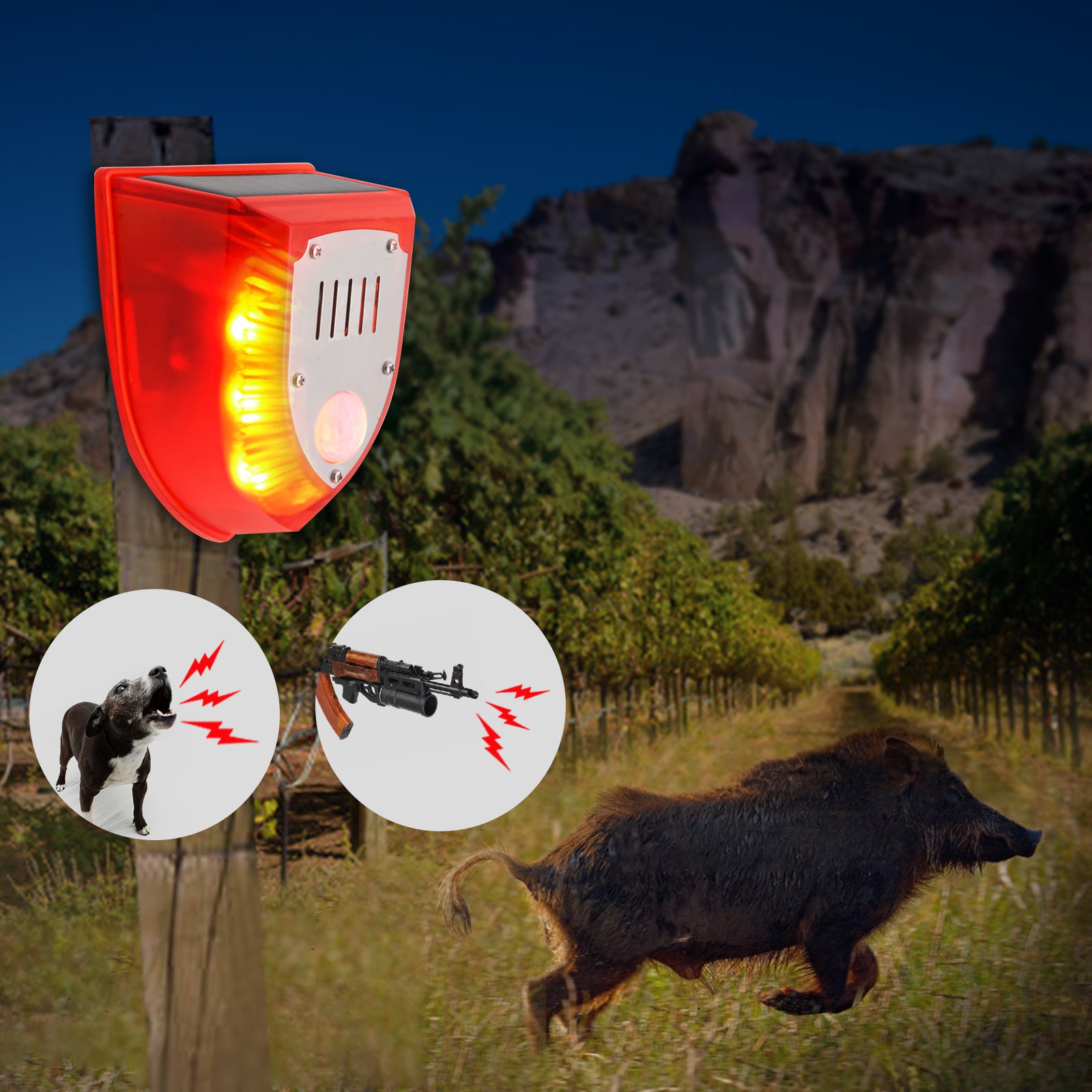Solar Alarm Light Magnetic Pull Wire Alarm No False Alarm Farm Orchard Anti-Theft Wild Boar Animal Driver
