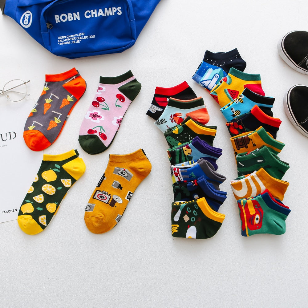 summer Trendy happy Socks men Cotton Boat Man Socks Interest Funny Originality Series harajuku ankle sock Animal fruit