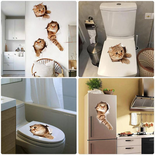 3D Cats Fridge Toilet Wall Sticker Bathroom Hotel Restaurant Home Decoration Animal Vinyl Decals Art Sticker Poster Ornament
